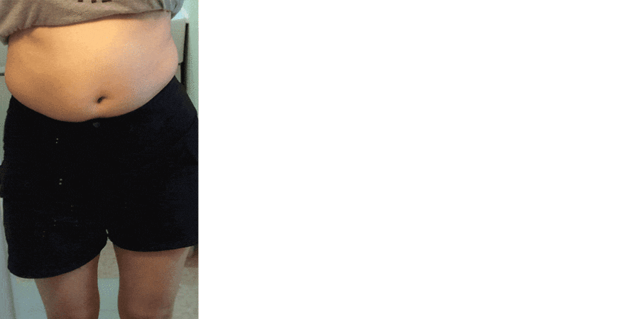 チャレンジ前の私は、59キロのポッコリじゃすまない残念なお腹。