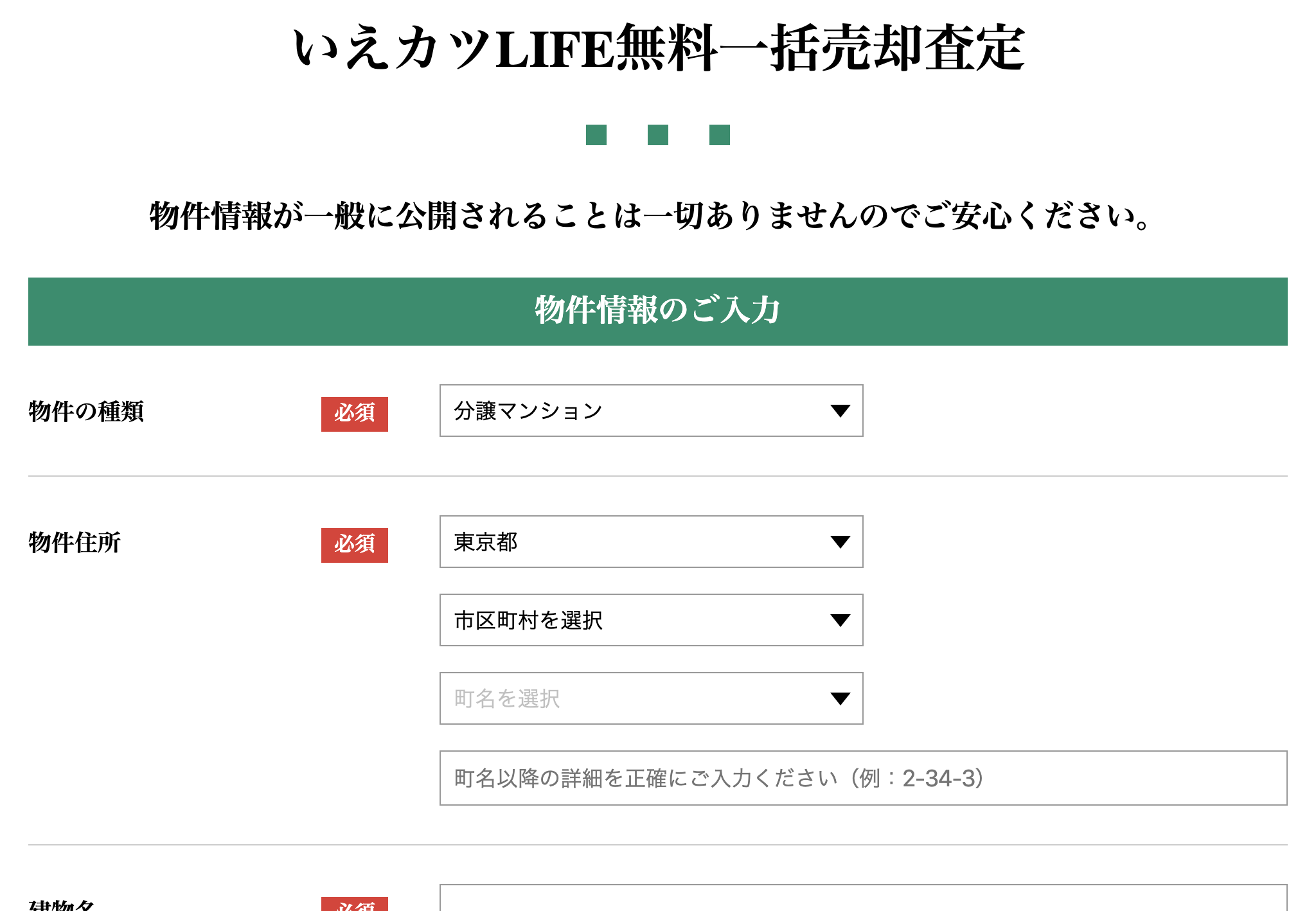 入力フォームが出てくるので、そこに物件住所や築年数など、物件のさらに詳しい情報を記入します。