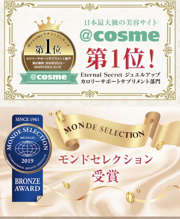 @コスメで1位を獲得し、モンドセレクションを受賞しているとあり、しっかりお墨付きもあるんです。