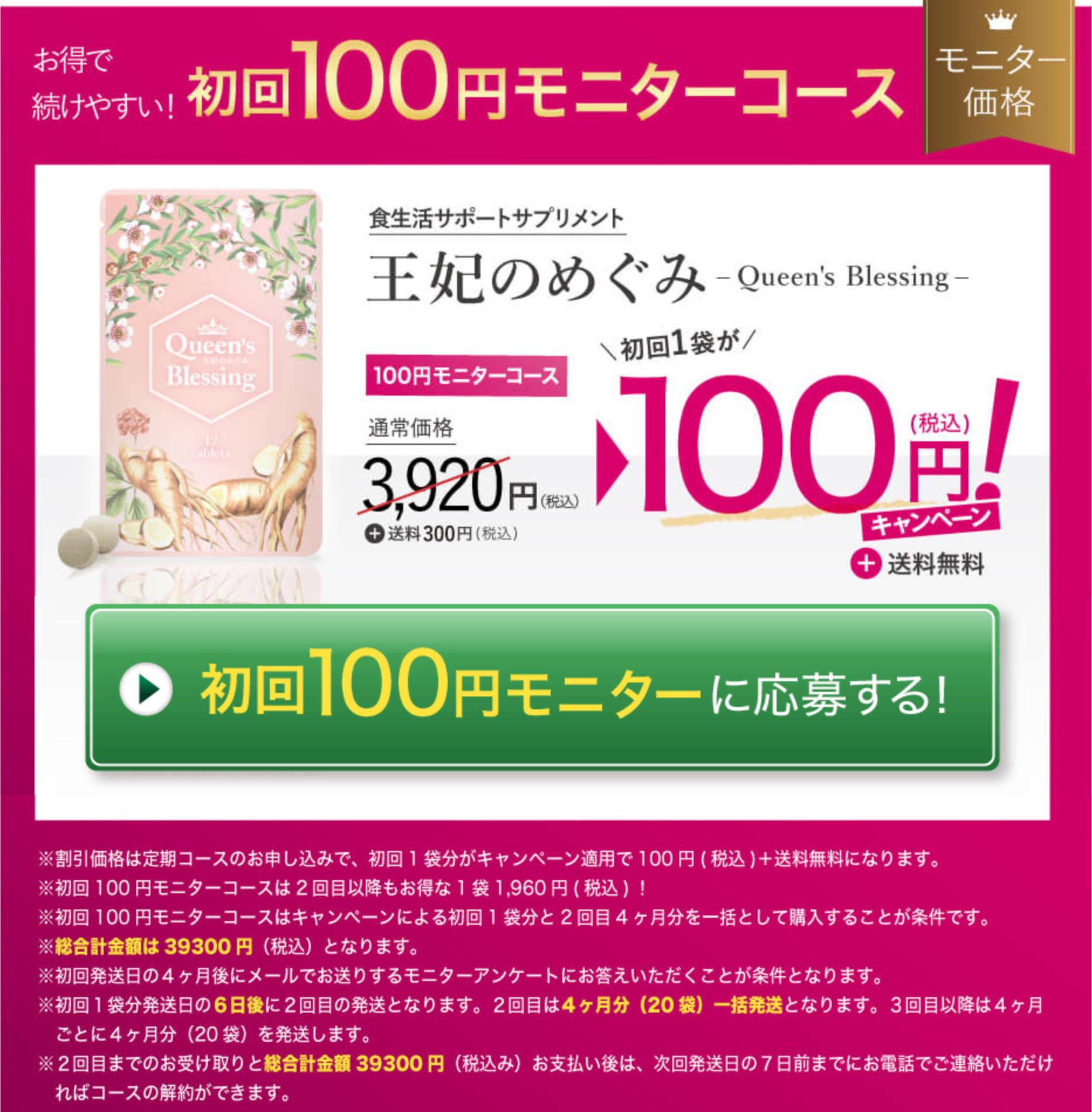 通常価格3,920円の王妃のめぐみが今なら…
