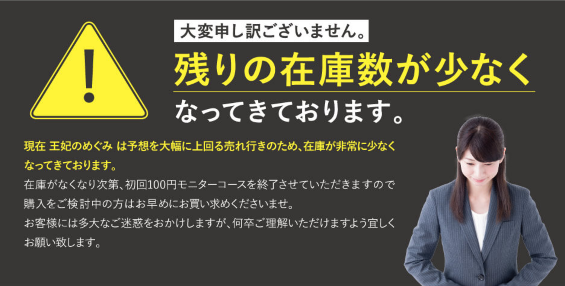 在庫が無くなり次第初回100円のモニターコースは終了となるようです!